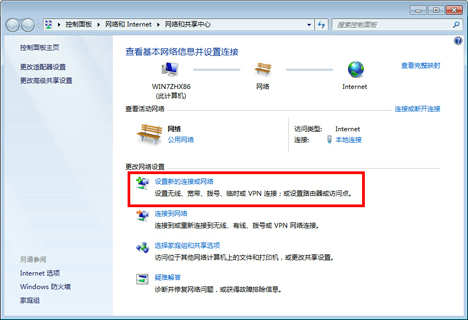 在 "网络共享中心" 点击 "建立一个新的连接或网络"